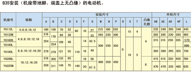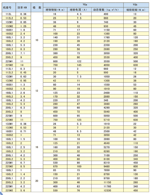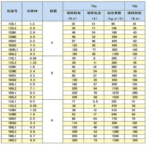 YG系列輥道用三相異步電動(dòng)機(jī)根據(jù)鋼廠的特殊工作需求和工作環(huán)境而專門設(shè)計(jì)制造的專用電動(dòng)機(jī)。電 動(dòng)機(jī)具有堵轉(zhuǎn)矩高,堵轉(zhuǎn)電流和溫升低的特點(diǎn),適用于工作環(huán)境溫度高、且要求頻繁正反轉(zhuǎn)的場(chǎng)合。 YG系列輥道用三相異步電動(dòng)機(jī)分別設(shè)計(jì)成YGA和YGB兩種工作型式,YGA適用于工作輥道,工作制為S5, YGB適用于輸送輥道,工作制為S1。 YG系列輥道用三相異步電動(dòng)機(jī)防護(hù)等級(jí)為IP54;絕緣等級(jí)為F級(jí);接法Y接;無風(fēng)扇。在調(diào)頻控制下, 電動(dòng)機(jī)能在5-70HZ頻率范圍內(nèi)正常工作,但其主要性能指標(biāo)同樣本規(guī)定有所變化。